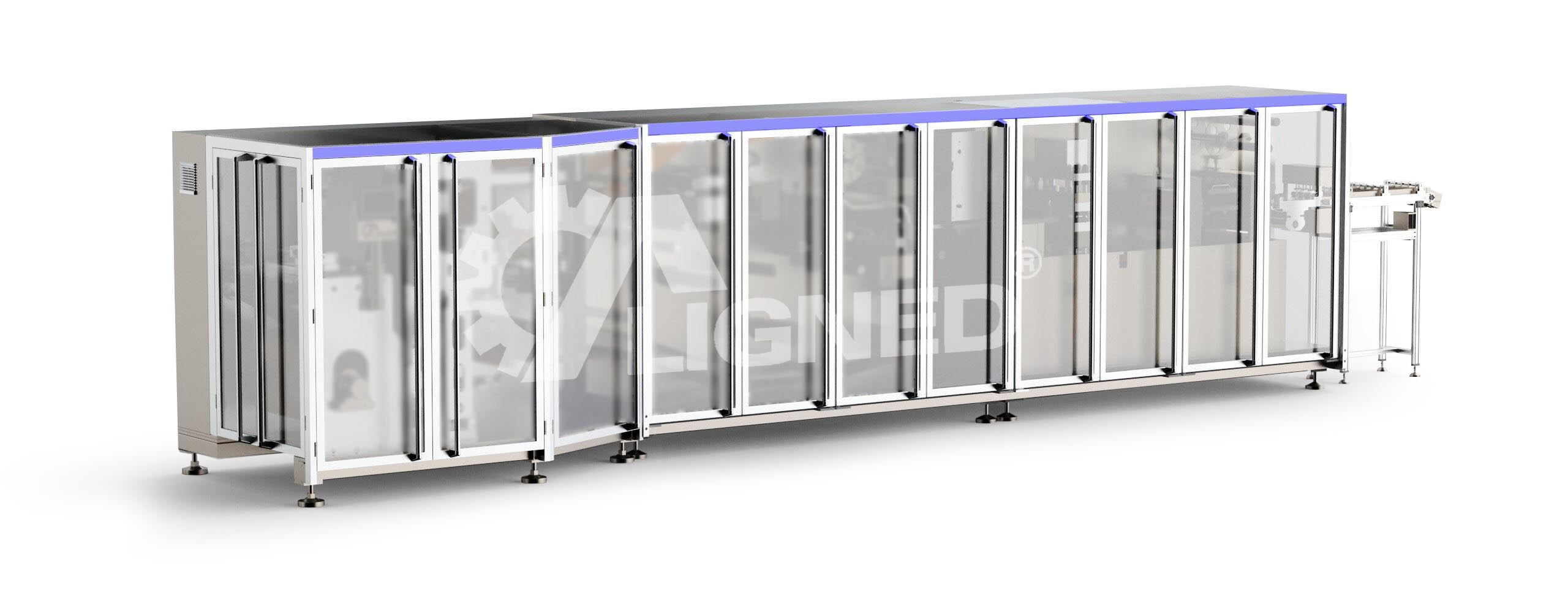 ODFs are highly sensitive to humidity and oxygen. Aligned Machinery’s fully automatic ODF packaging systems integrate cutting, forming, and sealing in a single line, with speeds up to 180 films per minute.