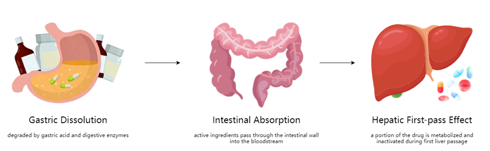 This entire process typically takes 30 minutes to 2 hours to reach effective plasma concentrations. More importantly, the first-pass effect in the liver can significantly reduce bioavailability. For certain drugs, less than 50% of the administered dose ultimately reaches systemic circulation in active form.